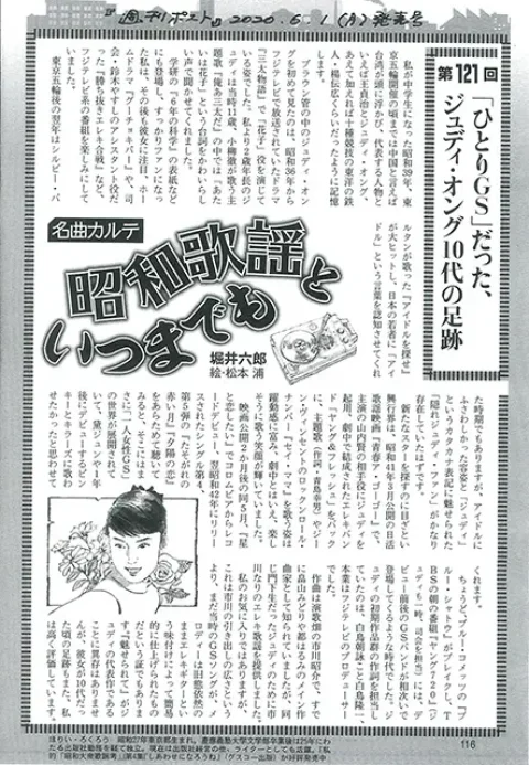 『週刊ポスト』連載、堀井六郎「昭和歌謡といつまでも」の続編第119回、第120回、第121回、を掲載しました。引き続きお楽しみください。